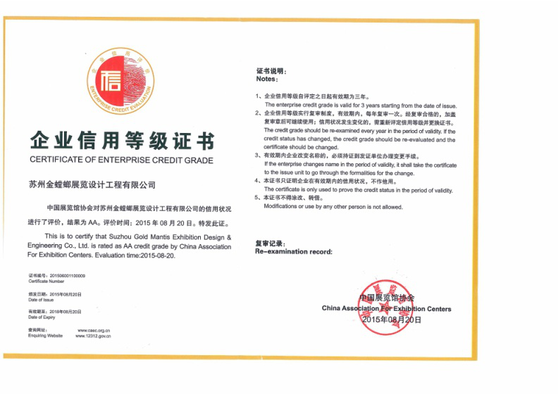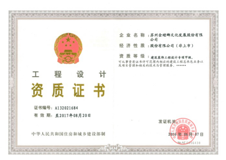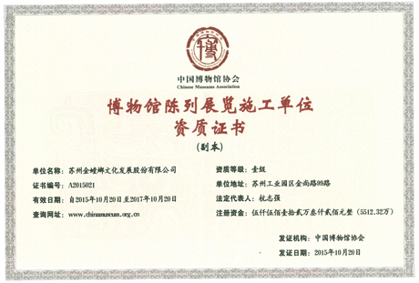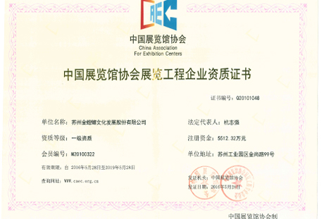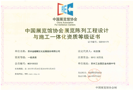 • 中國展覽館協會展覽陳列工程設計與施工一體化一級資質