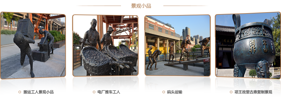 主題性雕塑是以歷史名人、風(fēng)土人情、市政規(guī)劃、豐功偉績(jī)等主題性人物、事件為藝術(shù)造型,用可塑材料或可雕、可刻的硬質(zhì)材料創(chuàng)造出一定空間的可視、可觸的藝術(shù)形象,借以反映人物、事件等方面的風(fēng)采和形象。景觀雕塑、景觀小品則是通過文化元素的提煉、材質(zhì)工藝的藝術(shù)化處理來美化環(huán)境、增加品位。