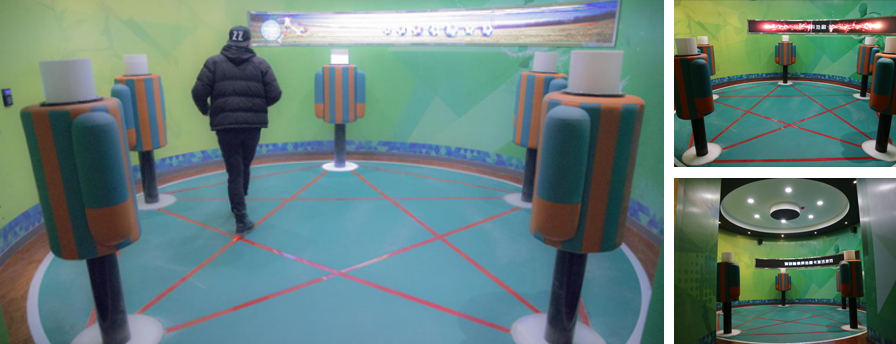項目名稱:臨淄足球博物館 完工時間:2015年 展示內容:帶球過桿 交互形式:光感交互