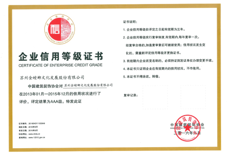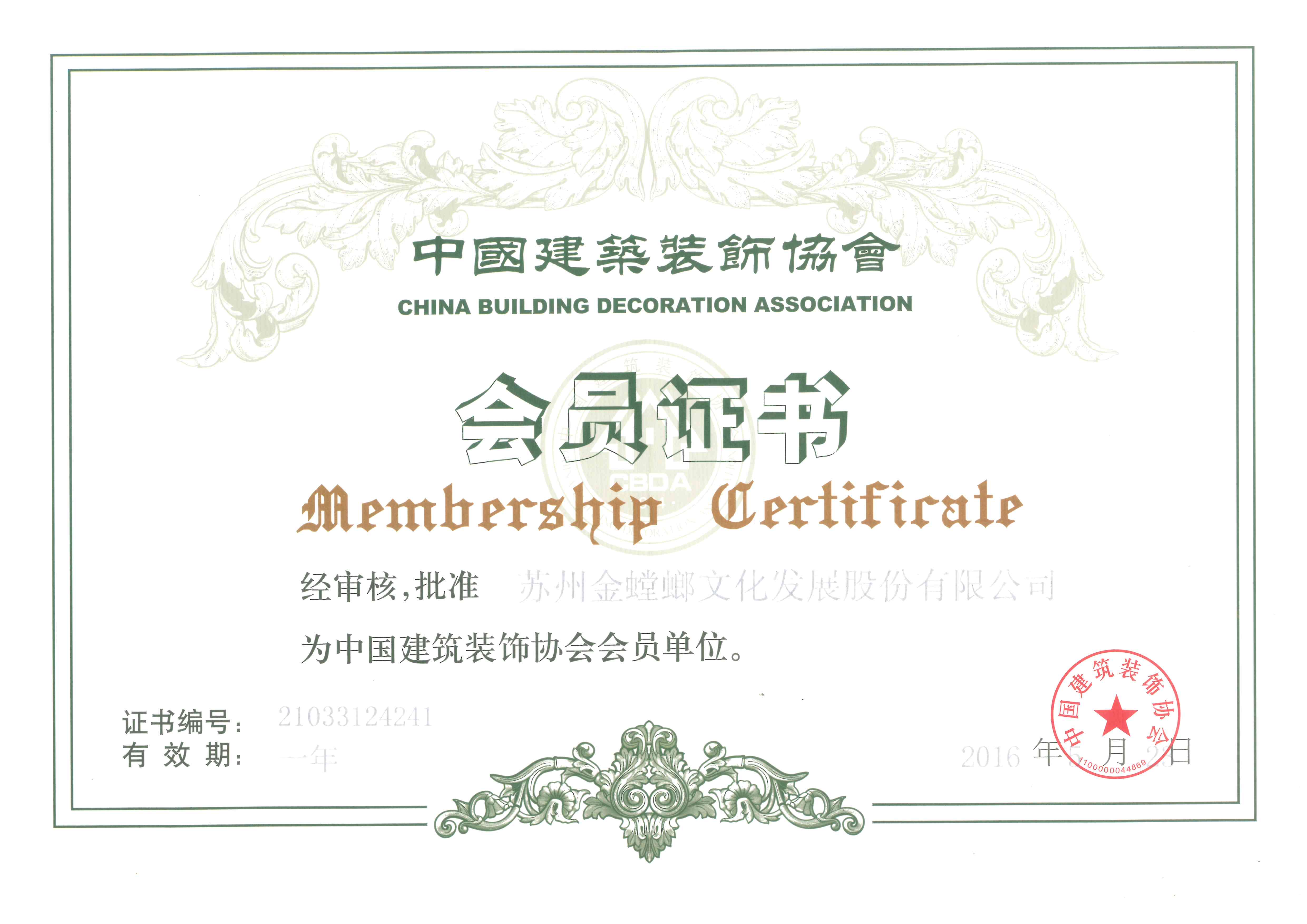 中國建筑裝飾協會會員證書