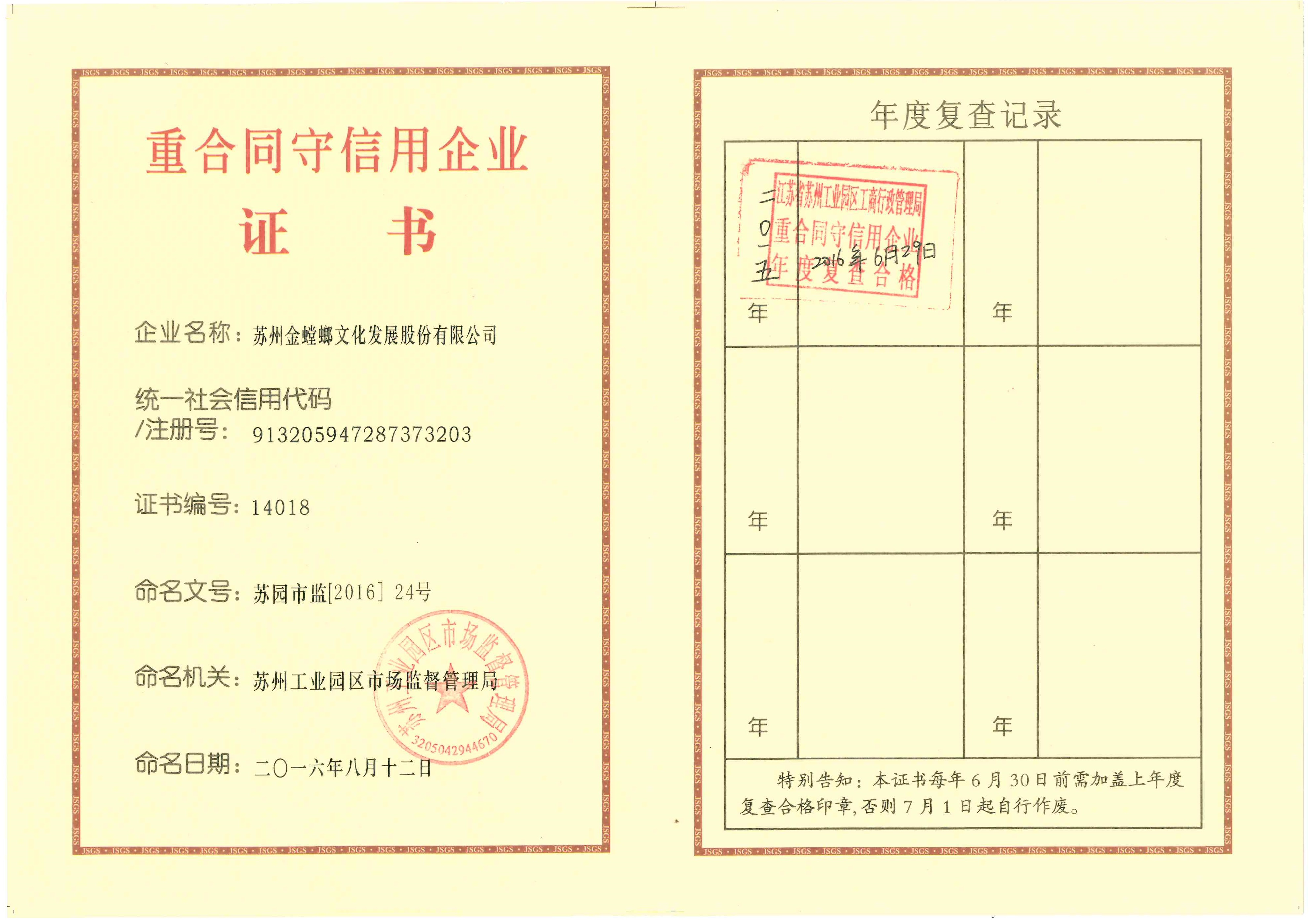 重合同守信用企業證書