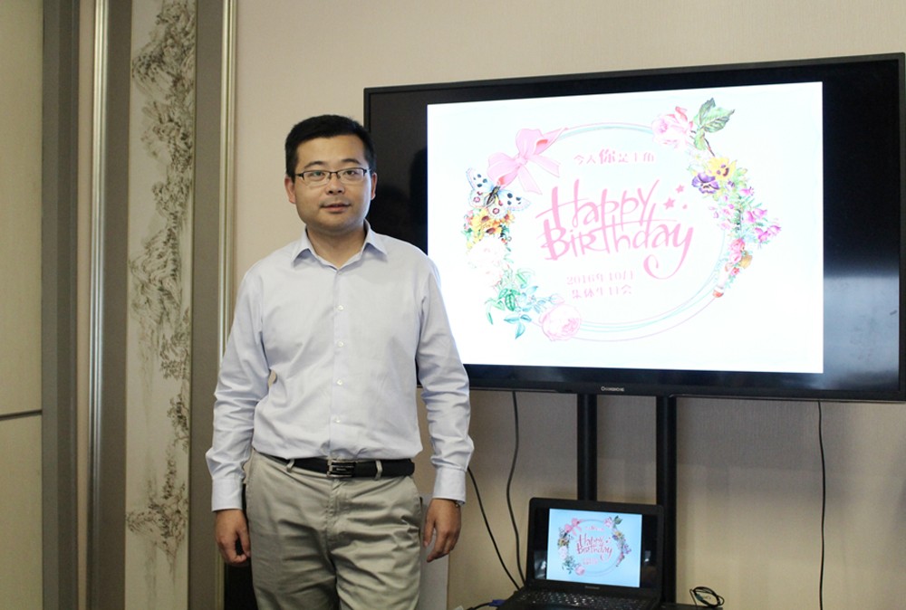 下午三點(diǎn)半,隨著本期主持人、工會(huì)主席嚴(yán)兆杰熱情洋溢的開場(chǎng)致辭,現(xiàn)場(chǎng)電視播放起暖場(chǎng)音樂拉開了生日會(huì)的序幕。壽星齊聚,電視同步播出壽星風(fēng)采;點(diǎn)燃蠟燭,同事們發(fā)來(lái)視頻送上祝語(yǔ);許下心愿,說(shuō)出對(duì)工作的愿望與期待;歌聲響起,大家在歡聲笑語(yǔ)中品嘗蛋糕不亦樂乎。