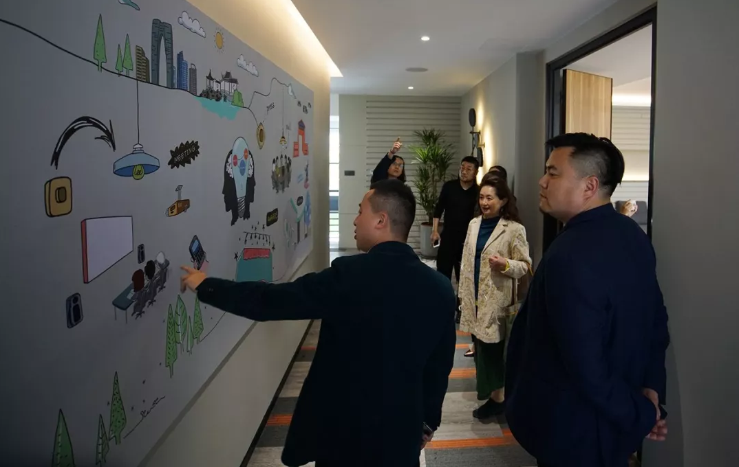 公司聯(lián)席總裁高珉、策劃設(shè)計研究院院長劉軍、總經(jīng)辦副主任李遙等高管接待了Julia CHIU教授一行。Julia CHIU教授一行在金浦九號參觀了蘇州金螳螂文化發(fā)展股份有限公司新辦公樓、創(chuàng)新文化展,并與設(shè)計師們舉行交流座談會。