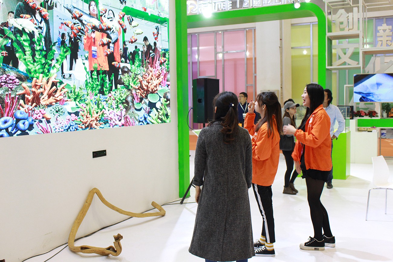 4月19日,2018第七屆“中國蘇州文化創意設計產業交易博覽會”在蘇州國際博覽中心開幕。蘇州金螳螂文化發展股份有限公司展出的AR增強互動“海底世界”和生物電感知觸摸互動“霍格沃茲墻”吸引了許多參觀者的駐足。