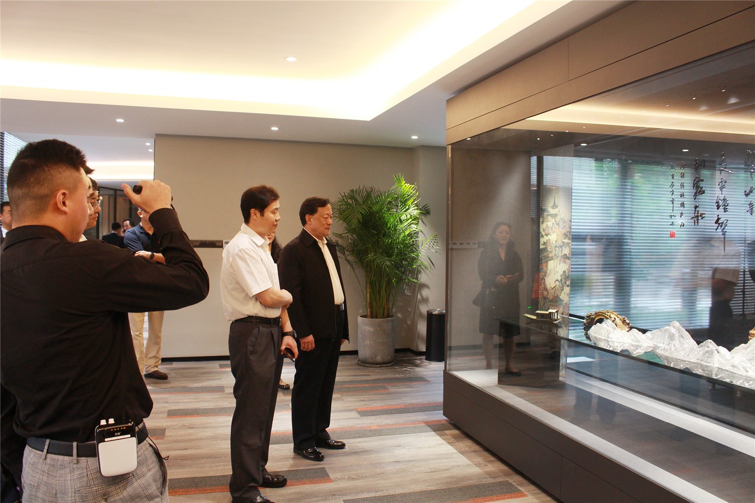 蘇州金螳螂文化發展股份有限公司董事長楊震熱情接待了工業和信息化部、中國建筑裝飾協會、蘇州市經信委、工業園區管委會及宣傳部、斜塘街道等相關領導和12位國家工藝美術大師及教授等一行并陪同參觀考察。