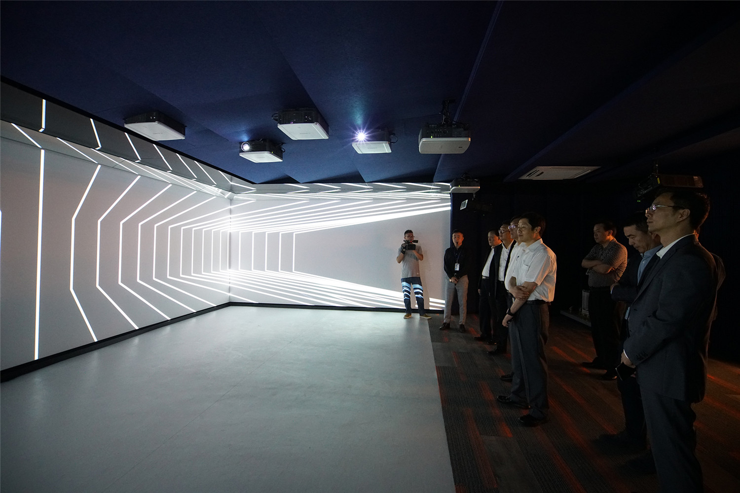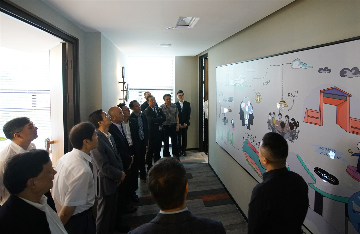 領導一行先后參觀了蘇州金螳螂文化發展股份有限公司公司各部門辦公環境及文化創意展廳,并在多媒體實驗室觀看了數字影片,對公司設計、創意、藝術為一體的創意展示能力和技術應用水平深表贊賞。