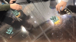 “五大青銅器互動桌”金螳螂文化自主研發。再現了母戊鼎、四羊方尊、銅象尊、父辛爵、婦好鸮尊五大“歷史名器”以及其中的故事。使用者們能夠通過互動、與實物比對、3D觀察等方式更加鮮活地了解歷史。
