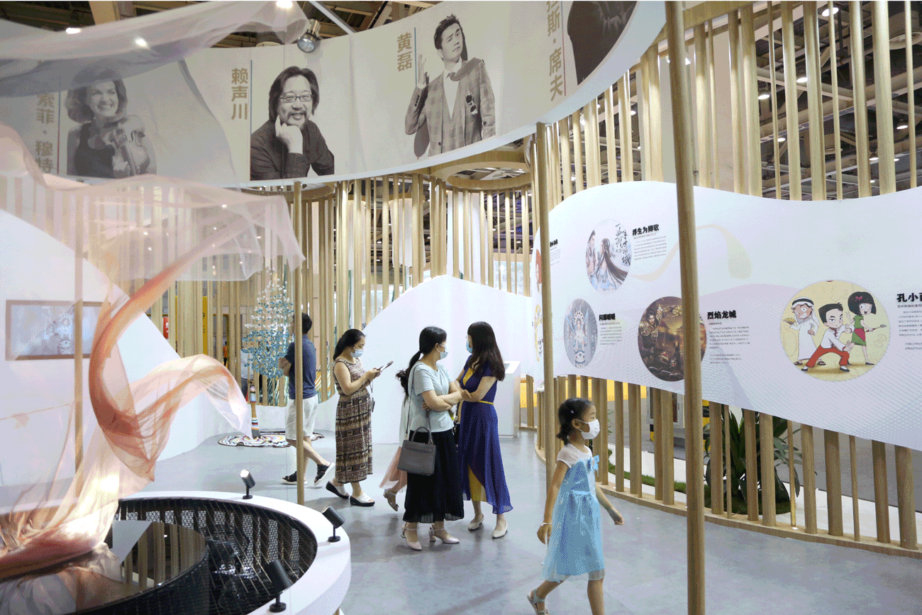 手繪的園區創意產業地圖,了解園區動漫游戲、創意設計、演藝娛樂、影視創制等文化產業的分布情況;從中央藝術裝置傳統絲綢元素與現代科技元素的融合中,感受藝術之魂;從文化作品萬花筒、經典劇作試聽設備中,體會“創意賦能生活”……