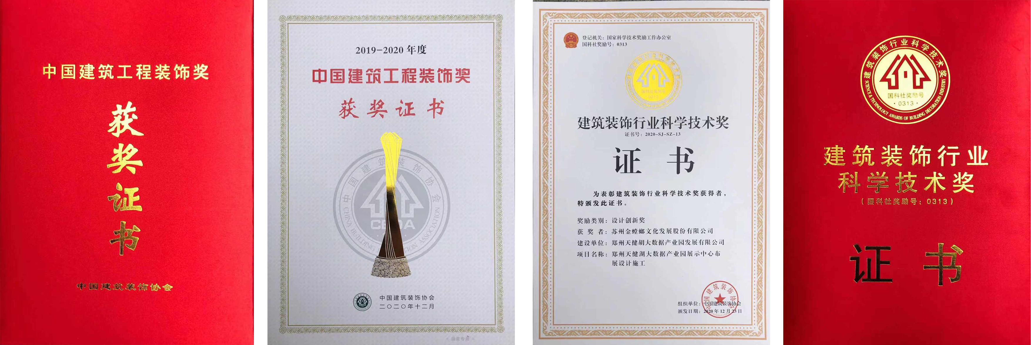 品質源于對創新的不懈追求。金螳螂文化自主研發的“多人競速騎行沉浸式體驗系統”獲得“2019年度建筑裝飾行業科學技術獎——科技創新成果獎”。設計與施工的鄭州天健湖大數據產業園展示中心項目獲得“2020年度建筑裝飾行業科學技術獎——設計創新獎”。