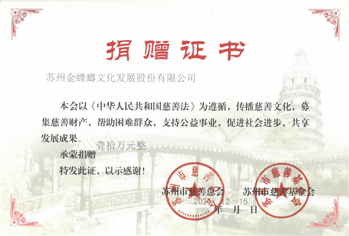 金螳螂文化在行動(dòng) 傳播慈善文化,幫助困難群眾,支持公益事業(yè),促進(jìn)社會(huì)進(jìn)步,共享發(fā)展成果。點(diǎn)滴善行匯聚江海,盡綿薄之力,擔(dān)社會(huì)責(zé)任。 愛心傳遞 Charity ??? 贈(zèng)人玫瑰,手留余香 ??部分證書 01 青山綠水就是金山銀山,保護(hù)地球從我們做起。近日,蘇州金螳螂文化發(fā)展股份有限公司向蘇州市慈善基金會(huì)捐贈(zèng)10萬(wàn)元,用于支持蘇州市垃圾分類與環(huán)保公益項(xiàng)目“零碳家園公益基金”。 02 讓善意的種子生根發(fā)芽,金螳螂文化每年組織員工愛心捐款。2021年籌集善款16.83萬(wàn)元,全額捐贈(zèng)給金螳螂公益慈善基金會(huì),助力慈善事業(yè)的發(fā)展。 03 金螳螂文化工會(huì)每年開展困難職工幫扶和走訪、慰問(wèn),幫助有需求的伙伴走出困境,面向更好的生活。 在金螳螂文化這個(gè)平臺(tái),我們同頻共振,攜手成長(zhǎng)。公司對(duì)在職員工實(shí)行就餐補(bǔ)貼、節(jié)日福利、生日紅包、免費(fèi)體檢、走訪慰問(wèn)等;對(duì)項(xiàng)目一線員工夏送清涼、冬送溫暖;同時(shí)開展豐富多彩的團(tuán)建拓展、考察交流活動(dòng),以健全的員工福利制度,力求打造幸福企業(yè)。 04 多年來(lái),金螳螂文化重視校企合作以及創(chuàng)新研發(fā),與上海大學(xué)、上海工程技術(shù)大學(xué)、蘇州大學(xué)、西交利物浦大學(xué)、南京藝術(shù)學(xué)院等院校建立了深度的產(chǎn)業(yè)研合作。 國(guó)際博物館協(xié)會(huì)國(guó)際博物館研究與交流中心(ICOM-IMREC)揭牌,金螳螂文化作為“上海大學(xué)教育發(fā)展基金會(huì)·國(guó)際文博教育基金”捐贈(zèng)企業(yè)之一,積極支持文博產(chǎn)業(yè)發(fā)展。 1:“上海大學(xué)教育發(fā)展基金會(huì)·國(guó)際文博教育基金”捐贈(zèng) 2:“室內(nèi)設(shè)計(jì)6+”聯(lián)合畢業(yè)設(shè)計(jì)(實(shí)驗(yàn)組) 3:與西交利物浦大學(xué)達(dá)成戰(zhàn)略合作 4:“姑蘇八點(diǎn)半 夜享悅高新”沉浸式產(chǎn)業(yè)研討會(huì) 5:與上海工程技術(shù)大學(xué)中韓多媒體設(shè)計(jì)學(xué)院合作簽約 6:與南京藝術(shù)學(xué)院進(jìn)行校企合作洽談 凝聚慈善力量,履行企業(yè)社會(huì)責(zé)任。金螳螂文化將持續(xù)投身公益事業(yè),以責(zé)任之心助力事業(yè)發(fā)展,真誠(chéng)回饋社會(huì),身體力行為社會(huì)創(chuàng)造更大的價(jià)值。