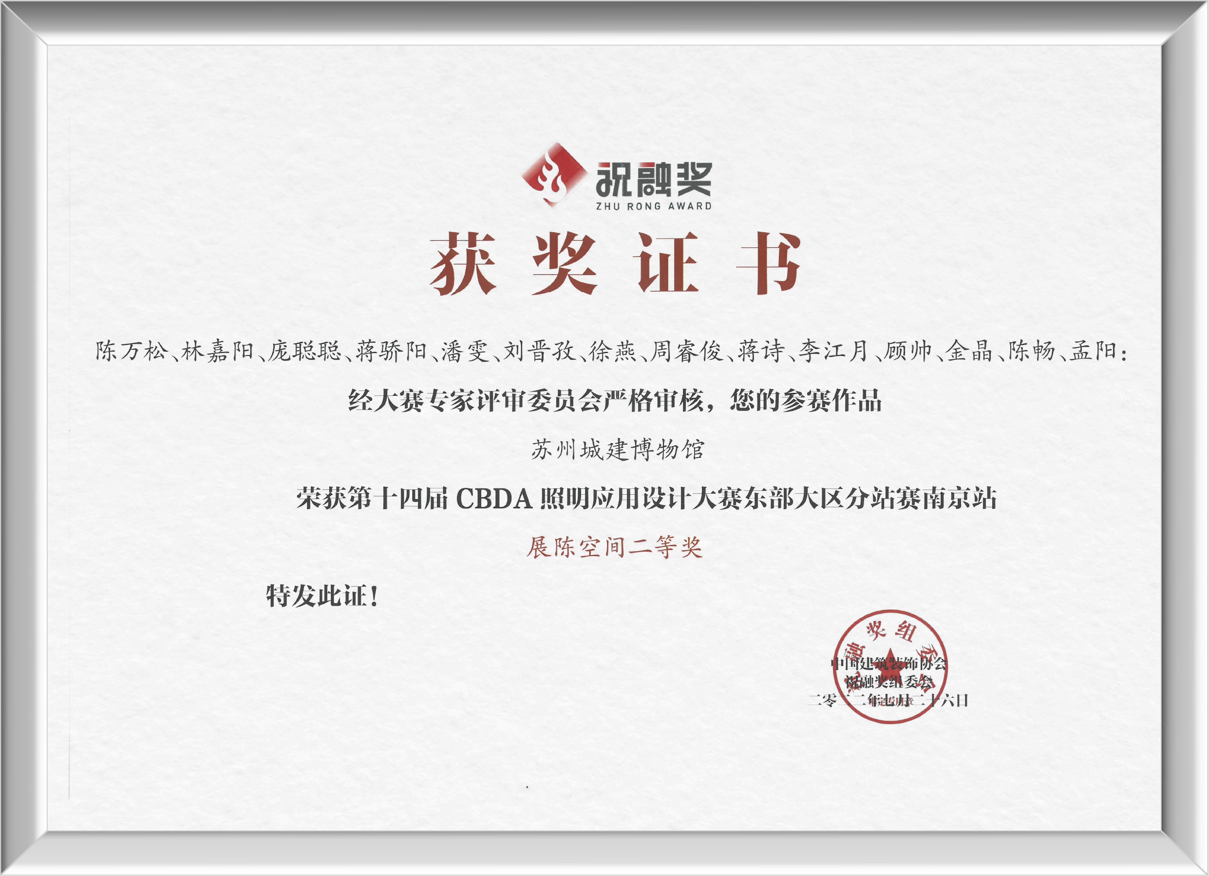 近日,第十七屆中照照明獎及第十四屆CBDA照明應用設計大賽(祝融獎)東部大區分站賽南京站獲獎名單公布,金螳螂文化作品吳文化博物館、蘇州城建博物館榮登榜單。 中照照明獎是由中國照明學會于2005年設立,經科學技術部批準、國家科學技術獎勵工作辦公室登記的中國照明領域唯一獎項,旨在獎勵國內外照明領域中,在科學研究、技術創新、成果推廣應用,實現高新技術產業化,照明工程實施和科普教育方面做出杰出貢獻的企事業單位和個人。 第十七屆中照照明獎評審結果正式公示,金螳螂文化設計項目吳文化博物館獲得本屆中照照明獎二等獎。 吳文化博物館位于澹臺湖景區世界文化遺產大運河及國保單位寶帶橋南側,建筑面積一萬八千余平方米。 不同展廳入口序廳的展示方式呈現多元化,為了凸顯風雅頌吳中的優雅氣韻,嚴格控制發光亮度,以免與周圍環境形成過大的亮度對比。采用蘇州園林韻味的造景,利用多層次的對景、模擬天光以及一小段石町小路共同呈現。場景化的布置配和層次分明的照明氛圍,游客得以直觀地領略當年戰役的情景。 7月26日,由中國建筑裝飾協會主辦的第十四屆祝融獎CBDA照明應用設計大賽東部大區南京分站賽頒獎典禮暨照明設計應用高峰論壇順利舉行。 當晚的頒獎典禮上,組委會正式公布了2022年度祝融獎東部大區分站賽(南京)各空間獎項、佳作獎、優勝獎等榮譽。金螳螂文化憑借作品蘇州城建博物館榮獲展陳空間二等獎。 蘇州城建博物館占地面積 1600 平方米,是以全國重點文物保護單位——衛道觀前潘宅為基底改建的專業博物館。 建館、造景、養心,于平江古巷里,把握城市生長脈絡。金螳螂文化項目團隊以蘇州之窗為核心元素構建了穿越古今的時光通道,貫穿起蘇州城建博物館城紀千載、現代蘇城、城市生長、城市客廳、百館之城等主要展廳。 光影錯落,為空間增色。在各類展館的設計營造中,照明都是重要的一環。 金螳螂文化設計團隊合理引入自然光,嚴格把控展項光線,以求打造和諧舒適的觀展氛圍,讓空間更有故事。