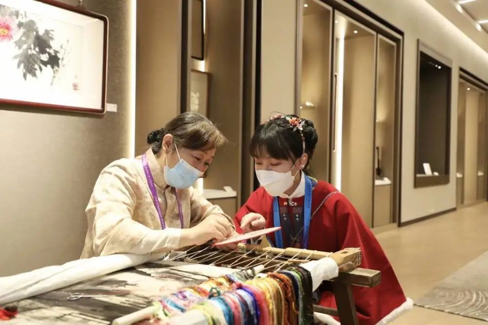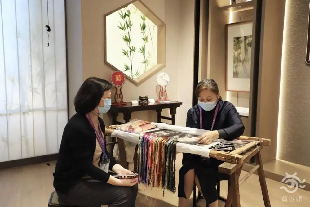 在賓客填門(mén)的“蘇作館”,在一件件精巧非凡的蘇作文物中,在宋錦拎包、緙絲旗袍、蘇繡掛件等熱銷衍生品中,在蹲坐著傾聽(tīng)吳派古琴藝術(shù)非遺傳承人講授知識(shí)的年輕人中……“蘇流”正涌向世界。