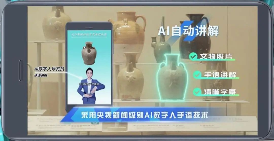 AI數字人手語導覽通過人工智能驅動和多模態融合等技術,高效、準確地將文本、語音等信息轉化為自然流暢的手語表達,生成逼真度高、手語表達準確的3D數字人視頻內容,在測評中可懂度達到85%以上,極大地改善了聽力障礙者的參觀體驗。